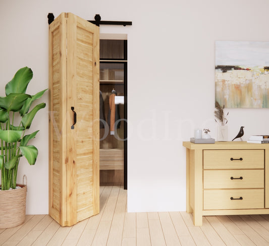 Porte coulissante pliable en bois brut