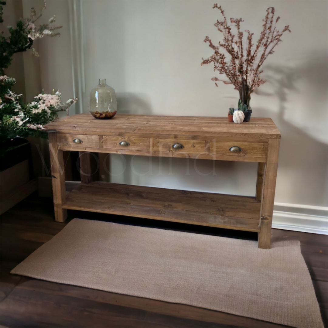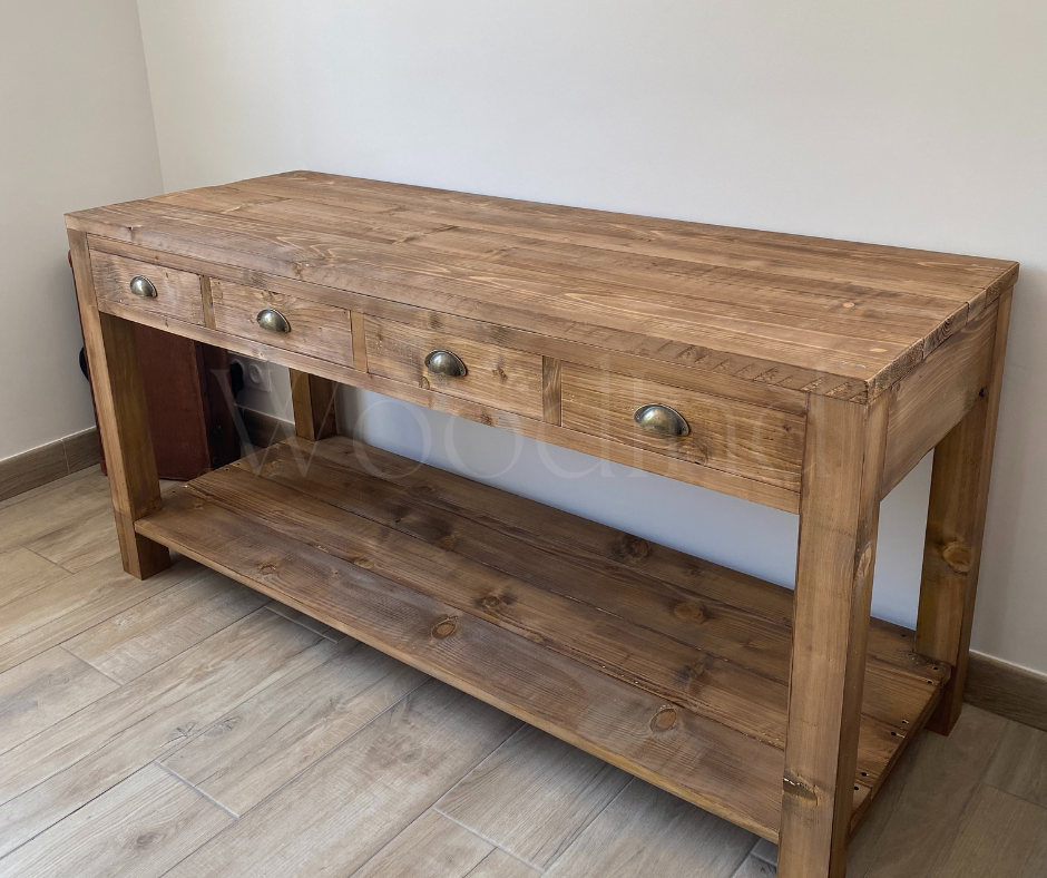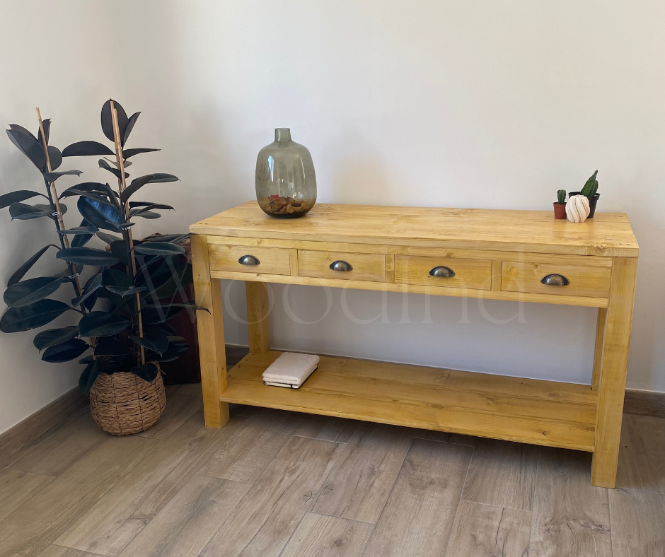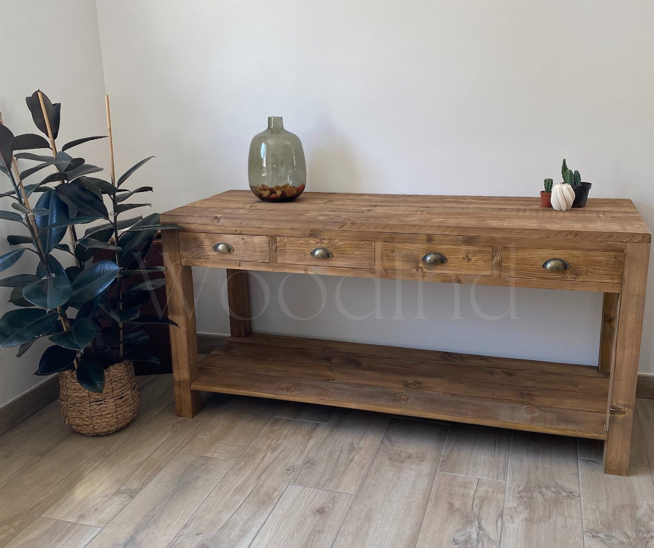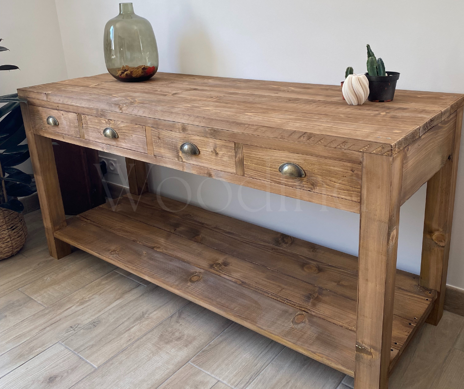 La console bois Marc est fabriqué à la main avec du bois brut de qualité. Cette console d'entrée est sur-mesure et personnalisable. Cette console vintage possède un plateau de 3cm, des pieds carrés, des faux tiroirs qui sont là pour cacher la tuyauterie et un plateau de rangement. Son style épuré s'adapte à toutes les déco. Elle peut être fabriqué en grande console ou en petite console, c'est le principe du sur-mesure, nous nous adaptons à vos besoins!
